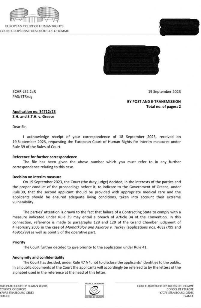 Η Ελλάδα έχασε εκδίκαση ασφαλιστικών μέτρων που αφορούν την διαμονή στην Κλειστή Ελεγχόμενη Δομή Σάμου. Έγινε επίκληση του άρθρου 39 το οποίο αφορά προστασία από άμεσο κίνδυνο ή ανεπανόρθωτη βλάβη.