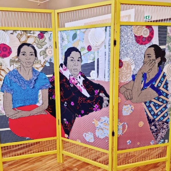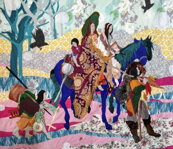Yπέροχα λεπτομερή, αισθησιακά έργα που μοιάζουν με ταπισερί – όχι από υφαντό ύφασμα αλλά από κολάζ που δημιουργήθηκαν από ραμμένα μαζί μεταχειρισμένα ρούχα.