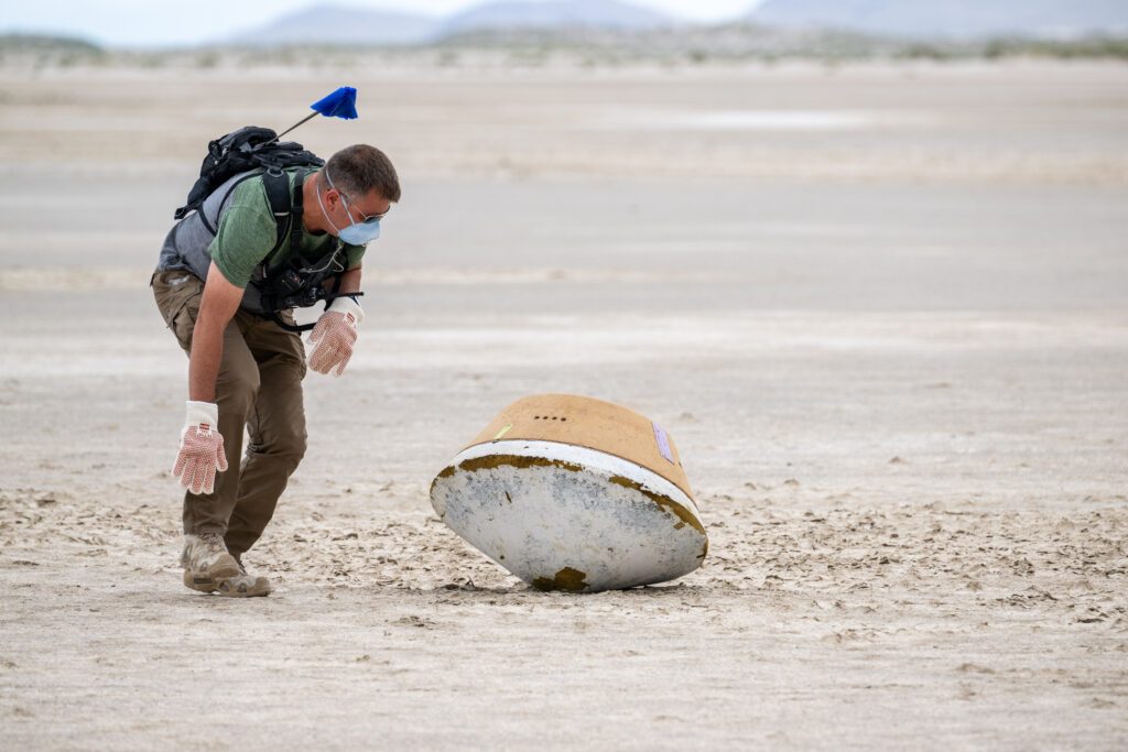 Αντίγραφο της κάψουλας σε πρόβα της NASA για την περισυλλογή των δειγμάτων (NASA/Keegan Barber)