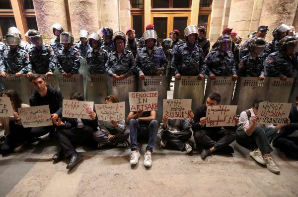 Όταν τη Δευτέρα 19 Σεπτεμβρίου τα αζερικά στρατεύματα χτυπούσαν αστραπιαία αρμενικές δυνάμεις αυτονομιστών στον θύλακα του Ναγκόρνο Καραμπάχ, εκατοντάδες Αρμένιοι πολιορκούσαν το προεδρικό μέγαρο ζητώντας από τον «προδότη» -όπως τον αποκαλούσαν- πρωθυπουργό της Αρμενίας Νικόλ Πασινιάν να παραιτηθεί.