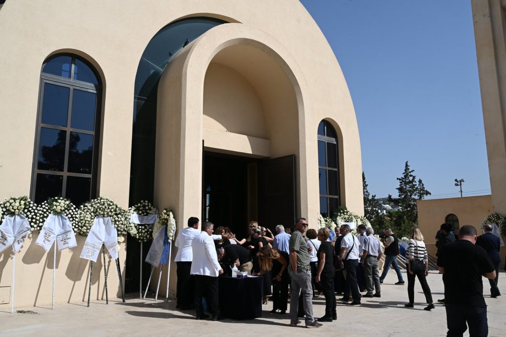 Η Κατερίνα Σακελλαροπούλου στην κηδεία της Άντζελας και του Φίλιππου