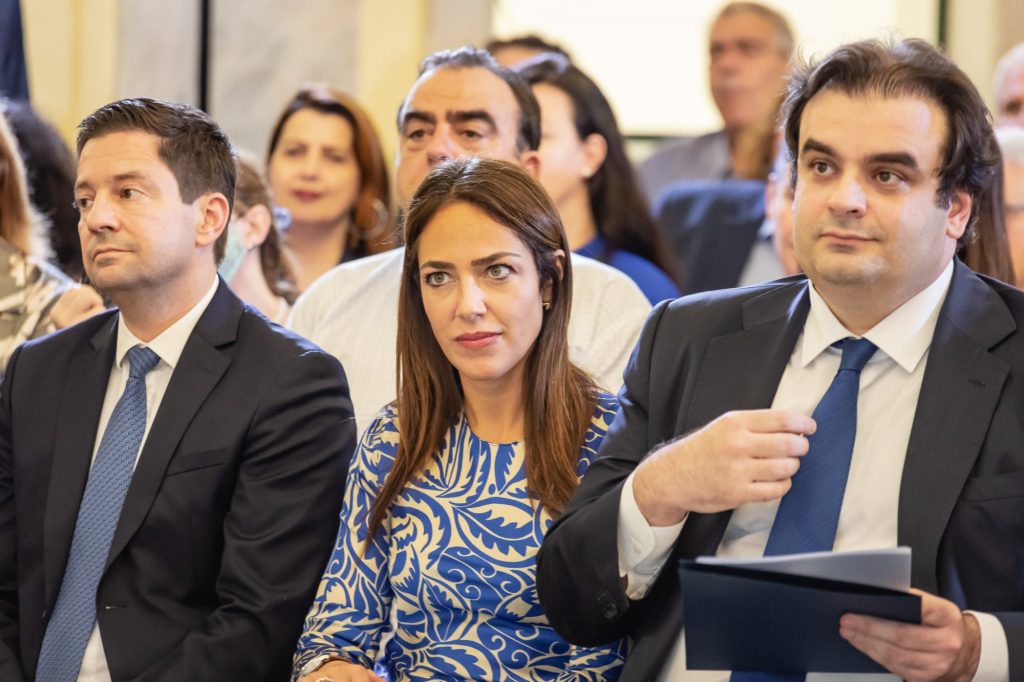 Ο υπουργός Παιδείας Κυριάκος Πιερρακάκης, η υφυπουργός Δόμνα Μιχαηλίδου, και ο πρύτανης του ΕΚΠΑ Γεράσιμος Σιάσος