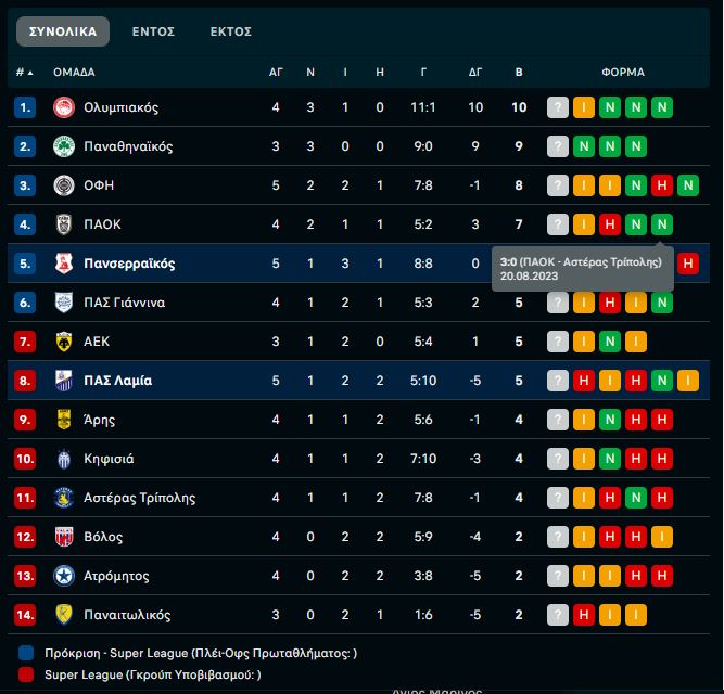 Πλέον με αυτό το τρίποντο ο Πανσερραϊκός βρίσκεται στη 5η θέση του βαθμολογικού πίνακα με έξι βαθμούς, ενώ από την άλλη η Λαμία βρίσκεται στην 8η με πέντε.