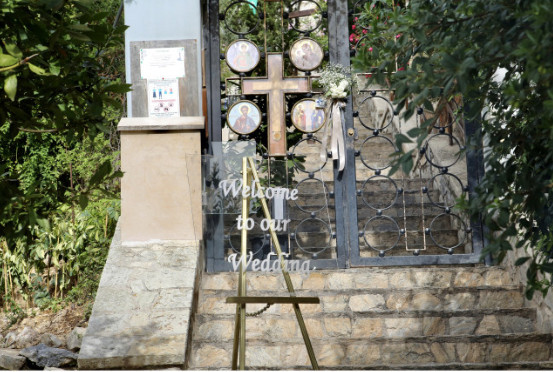 Τα πρώτα πλάνα από τα σκαλιά της εκκλησίας αποκάλυψαν κάποιες λεπτομέρειες για τον στολισμό που είναι γεμάτος από ορτανσίες, ενώ η ανθοδέσμη της νύφης θα αποτελείται από τριαντάφυλλα.