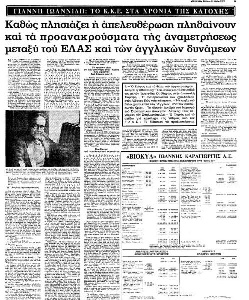*Αποσπάσματα από δημοσίευμα του «Βήματος» που είχε κυκλοφορήσει στις 19 Μαΐου 1979. Σε αυτό —όπως και σε ολόκληρη σειρά σχετικών άρθρων που είχαν δημοσιευτεί τότε στο «Βήμα»— ο Γιάννης Ιωαννίδης, ηγετικό στέλεχος του ΚΚΕ σε μια από τις πλέον ταραχώδεις περιόδους της ιστορίας μας, αναφέρεται, μεταξύ άλλων, στη Συμφωνία της Καζέρτας, που υπεγράφη στις 26 Σεπτεμβρίου 1944.