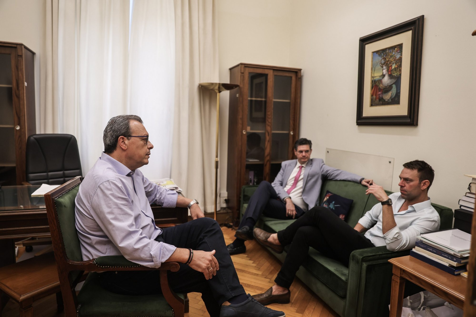 Ο νεοεκλεγείς πρόεδρος του ΣΥΡΙΖΑ, Στέφανος Κασσελάκης βρέθηκε σήμερα στη Βουλή με αφορμή τη συνάντησή του με τον Σωκράτη Φάμελλο και της παράδοσης του γραφείου του στον κ. Κασσελάκη καθώς βάσει των κανονισμών της Βουλής δεν επιτρέπεται πλέον να το διατηρεί.