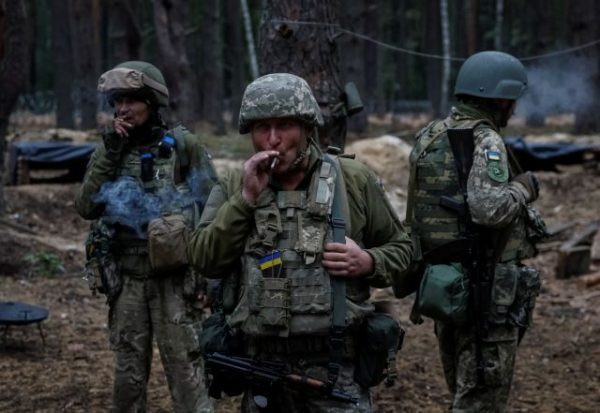 Ουκρανοί στρατιώτες καπνίζουν στη θέση τους κοντά στα σύνορα με τη Λευκορωσία, εν μέσω της επίθεσης της Ρωσίας στην Ουκρανία, στην περιοχή Zhytomyr, Ουκρανία, 20 Σεπτεμβρίου 2023 (REUTERS/Gleb Garanich).