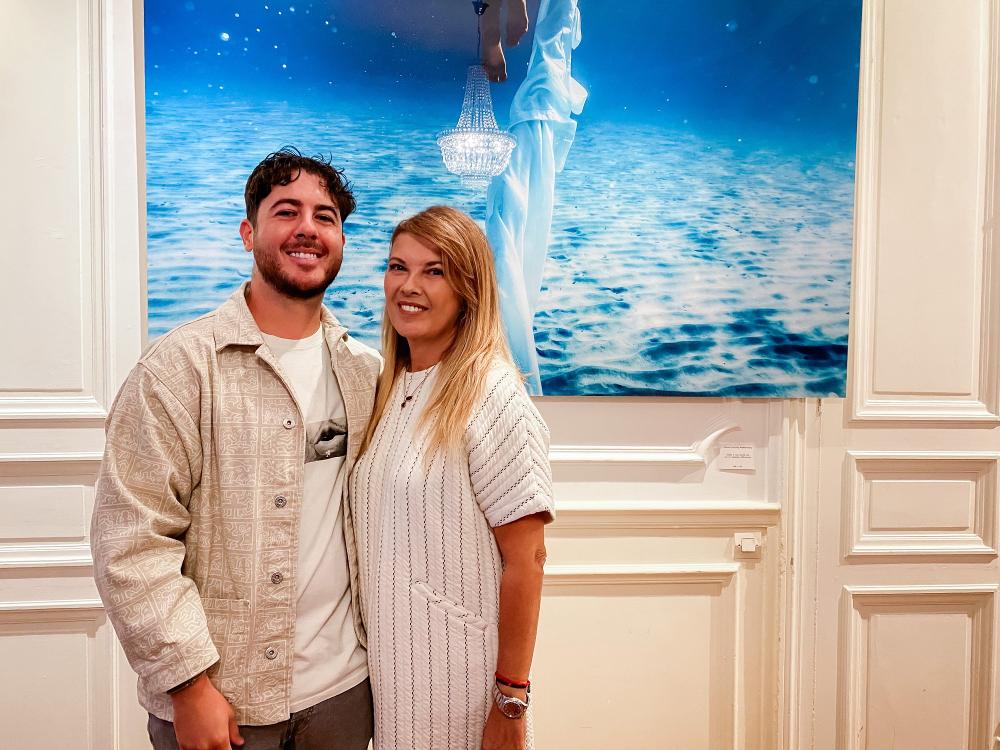 Στο πλευρό του βρίσκονταν και η μητέρα του Σοφία Αλιμπέρτη, που δεν έκρυψε τη συγκίνησή της όταν εκείνος πήρε το μικρόφωνο και έκανε μια ενδελεχή ξενάγηση στα έργα του.
