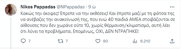 Λυπάμαι που, την ώρα που υποφέρουν συμπολίτες μας, πρέπει να ασχοληθώ με δευτερεύον ζήτημα, αλλά επιχειρείται πολιτική εκμετάλλευση από ΝΔ-ΜΜΕ.