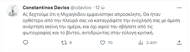 Δεκάδες είναι τα σχόλια κάτω από την ανάρτηση του Στέφανου Κασσελάκη για το συγκεκριμένο περιστατικό με τη Δόμνα Μιχαηλίδου.