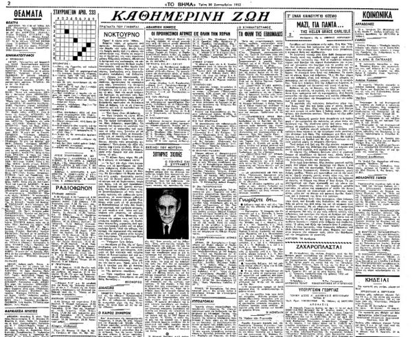 *Κείμενο με το οποίο η εφημερίδα «Το Βήμα» αποχαιρέτησε το λογοτέχνη και ακαδημαϊκό Σωτήρη Σκίπη την επαύριον του θανάτου του στην Προβηγκία της Γαλλίας, την Τρίτη 30 Σεπτεμβρίου 1952.