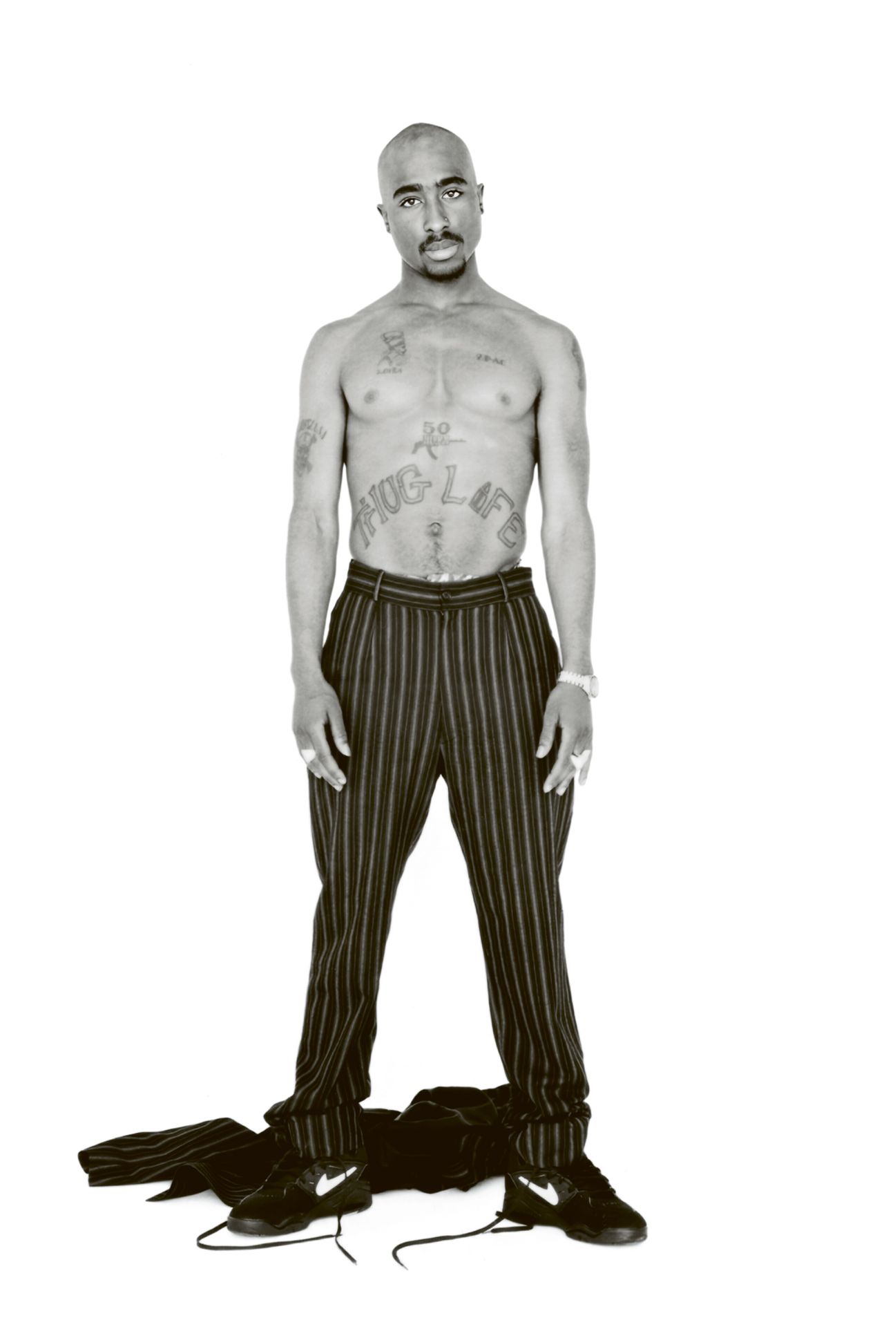 Αθλητικά παπούτσια συν παντελόνι κουστουμιού ισούνται με μια iconic φωτογράφιση του Tupac