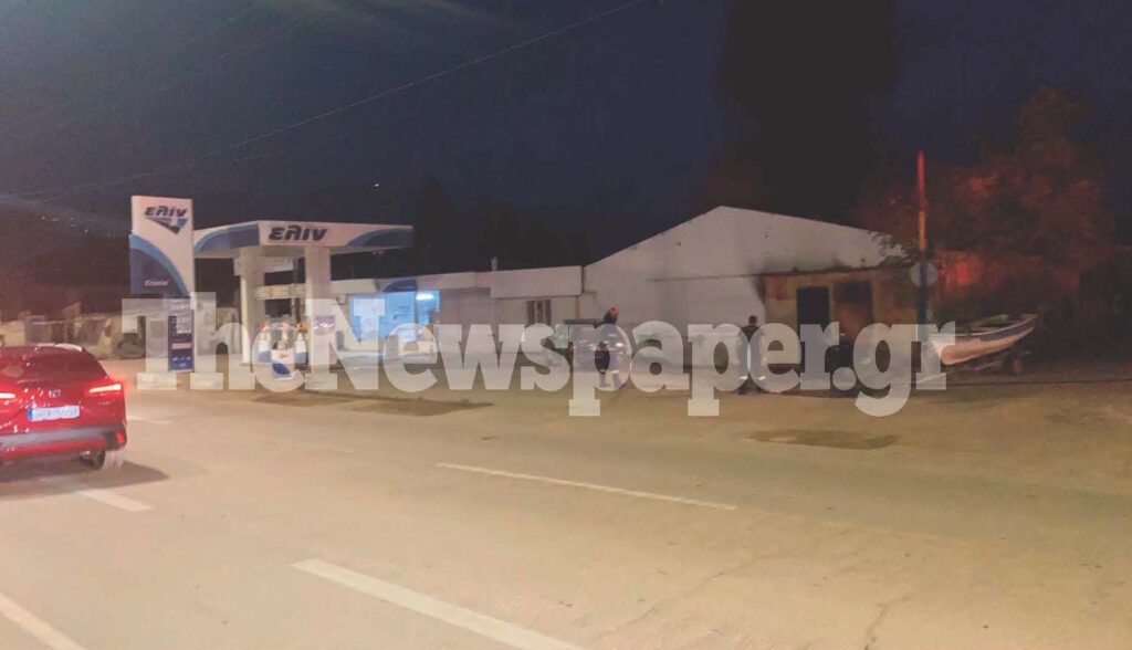 Η αποθήκη στην οποία εκδηλώθηκε η φωτιά και το διπλανό βενζινάδικο