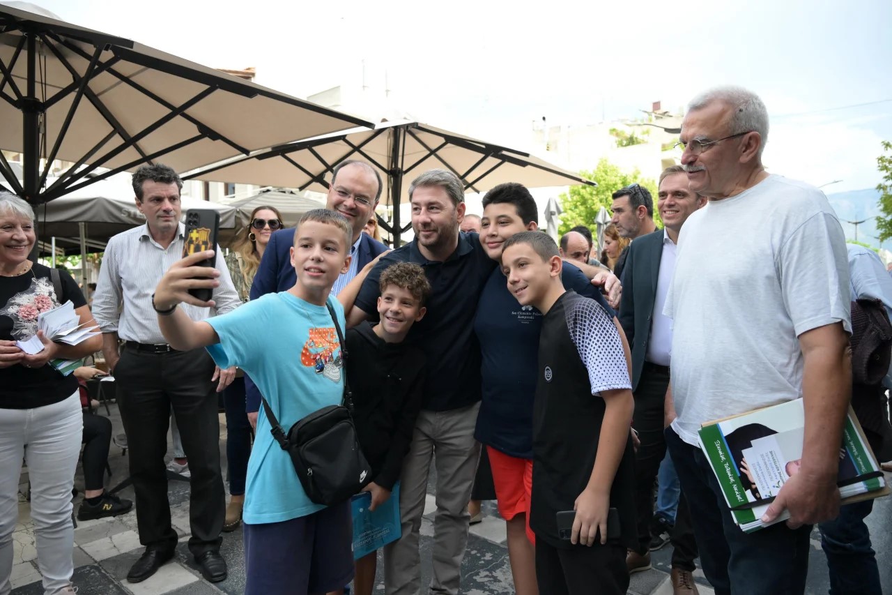 Ο Νίκος Ανδρουλάκης φωτογραφίζεται με παιδιά στην Κόρινθο