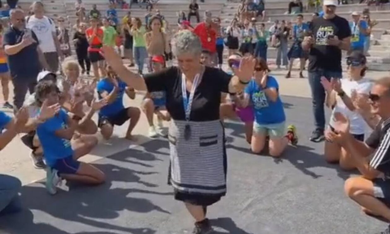 Όχι μόνο συμμετείχε στον αγώνα και κατάφερε να τερματίσει αλλά στο τέλος χόρεψε και κρητικούς χορούς, με τους παρευρισκόμενους και τους αθλητές στο ανοιχτό θέατρο Αρκαλοχωρίου να την αποθεώνουν.