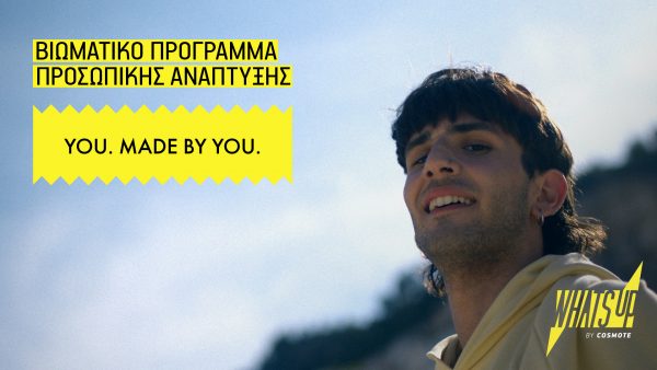 Τη δυνατότητα να ενισχύσουν την αυτοπεποίθησή τους, να ανακαλύψουν τα «θέλω» τους και να βρουν τη δύναμη μέσα τους να τα πετύχουν, δίνει στους νέους το WHAT’S UP, μέσα από το “YOU. MADE BY YOU”. Ένα βιωματικό πρόγραμμα προσωπικής ανάπτυξης, που απευθύνεται σε όλους τους νέους ανεξαρτήτως σπουδών, εργασίας και κοινωνικής κατάστασης, είναι εντελώς δωρεάν και εντάσσεται στις δράσεις της COSMOTE για την στήριξη της κοινωνίας και του κοινωνικού συνόλου.