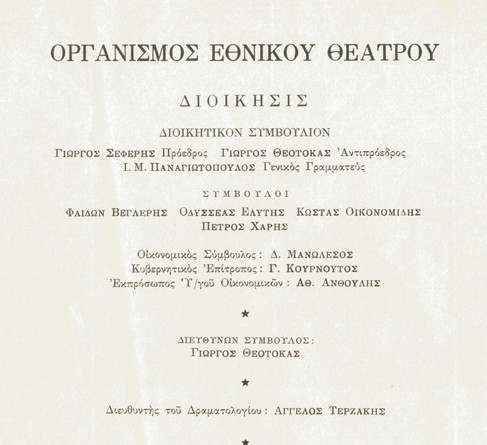 Το κείμενο αυτό του Τερζάκη, που έφερε τον τίτλο «Το Εθνικό Θέατρο και το Αρχαίο Δράμα», είχε συμπεριληφθεί στο έντυπο πρόγραμμα των «Επιδαυρίων» του 1964. Ο Τερζάκης ήταν τότε ο διευθυντής του Δραματολογίου του Οργανισμού Εθνικού Θεάτρου (θαρρώ πως αξίζει πραγματικά να διαβάσετε ακριβώς από κάτω τα ονόματα των συνεργατών του Τερζάκη στον Οργανισμό Εθνικού Θεάτρου).