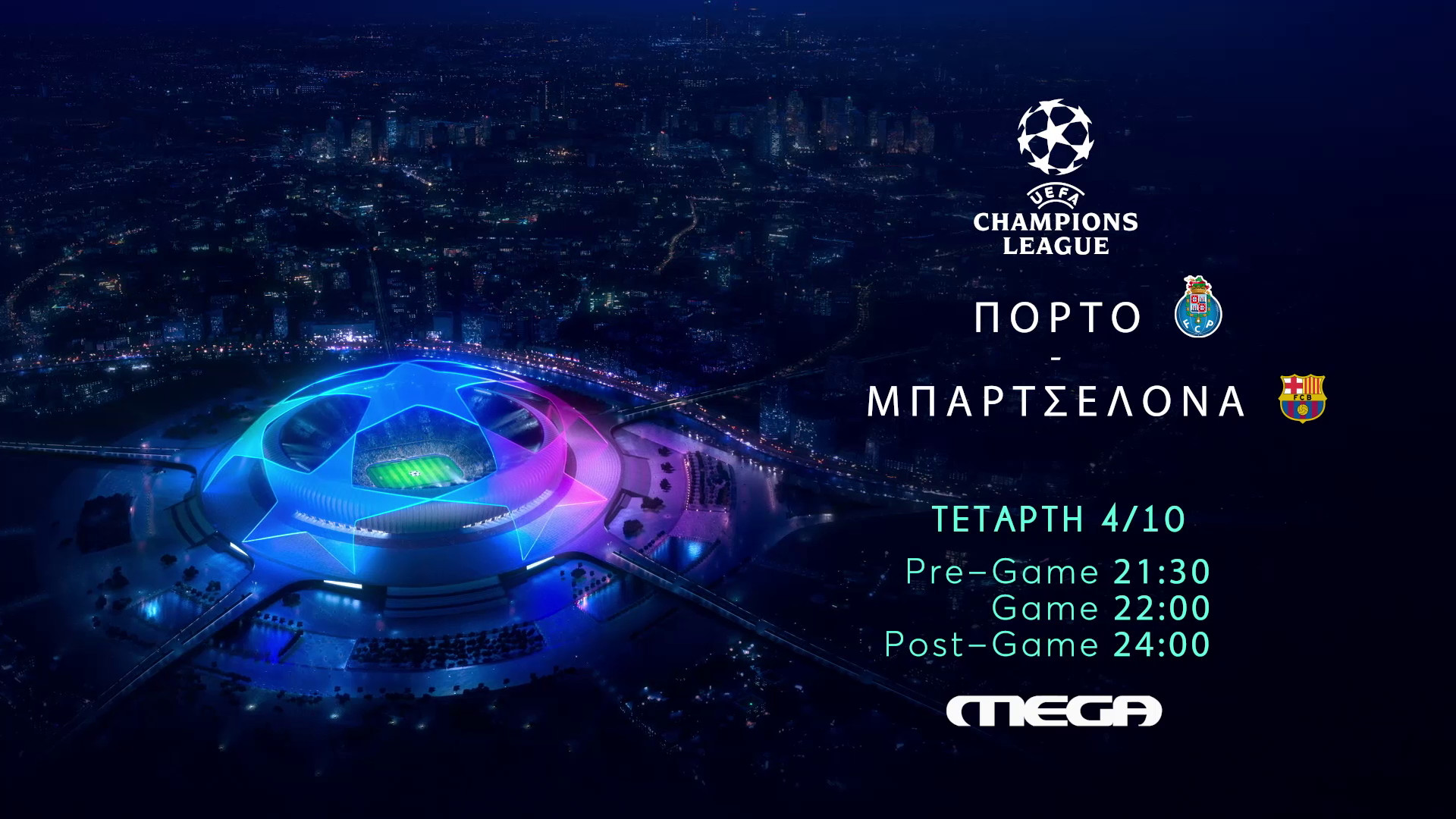To MEGA φέρνει ζωντανά στις οθόνες μας το σούπερ ντέρμπι της δεύτερης αγωνιστικής της φάσης των ομίλων του UEFA Champions League, ανάμεσα στην Πόρτο και την Μπαρτσελόνα, αύριο Τετάρτη 4 Οκτωβρίου στις 22:00.