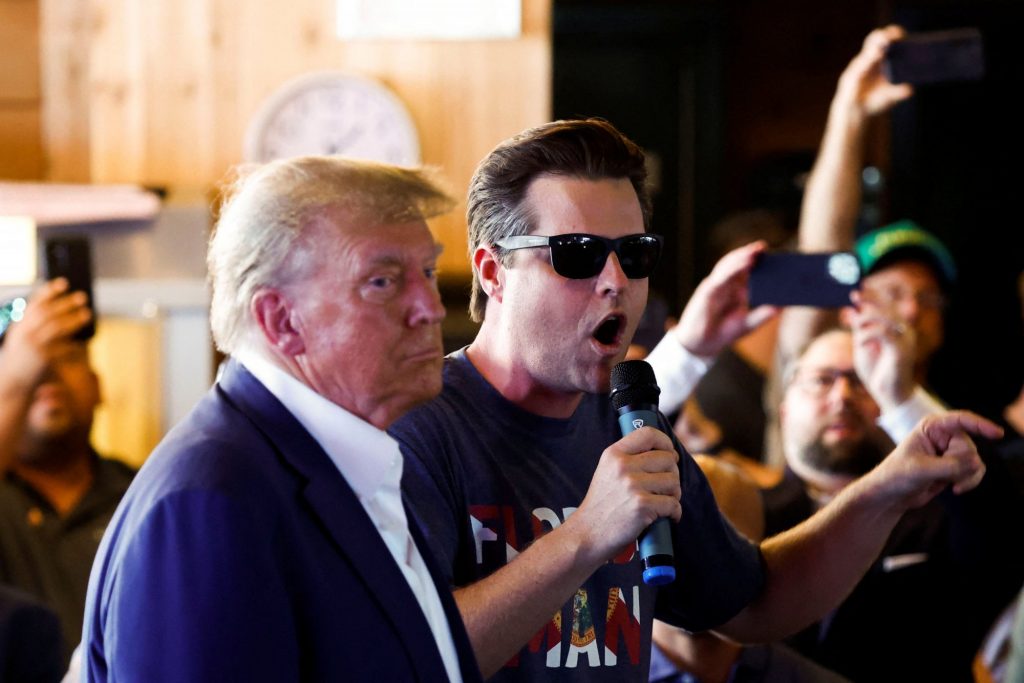 Ο Ρεπουμπλικανός βουλευτής της Φλόριντα, Ματ Γκέιτζ, σε προεκλογική συγκέντρωση του Ντόναλντ Τραμπ τον Αύγουστο στην Αϊόβα
