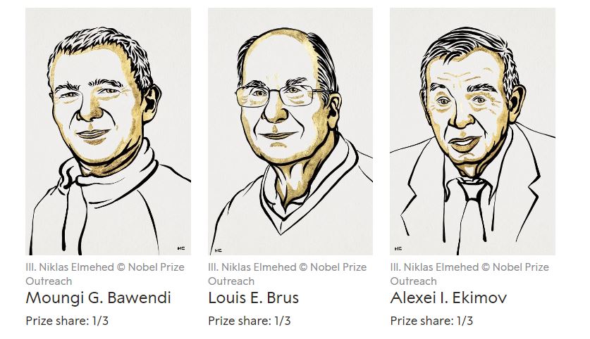 Ο γάλλος Μούνγκι Μπαουέντι του ΜΙΤ, ο αμερικανός Λούις Μπρους του Πανεπιστημίου Κολούμπια και ο ρώσος Αλεξέι Εκίμοφ της αμερικανικής εταιρείας Nanocrystals Technology τιμώνται «για την ανακάλυψη και σύνθεση των κβαντικών κουκκίδων».