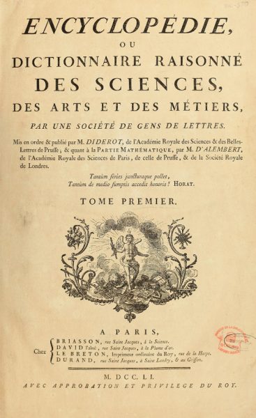 Το 1750 παρουσιάστηκε το πρώτο επεξεργασμένο σχέδιο της Εγκυκλοπαίδειας, και ο Ντιντερό άρχισε να διευρύνει τον κύκλο των Εγκυκλοπαιδιστών με τον Γκριμ, τον βαρώνο Ντ’ Ολμπάς και την κυρία Ντ’ Επινέ. Το 1751 δημοσιεύτηκε ο πρώτος τόμος της Εγκυκλοπαίδειας, που έγινε δεκτός με βίαιες επιθέσεις από τους Ιησουίτες. Το 1755 ο Ντιντερό ερωτεύτηκε τη Σοφί Βολάν. Ήταν ένας έρωτας που έμελλε να κρατήσει ως τον θάνατο. Δύο χρόνια αργότερα ο Ντιντερό δημοσίευσε με το ψευδώνυμο «Παλισό» τις «Μικρές επιστολές για μεγάλους φιλοσόφους» κι άρχισε να συνεργάζεται στη «Φιλολογική Αλληλογραφία» του Γκριμ. Την ίδια χρονιά τα χάλασε με τον Ρουσσώ, βάζοντας τέλος στη μακρόχρονη φιλία και συνεργασία τους.