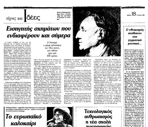 *Άρθρο για τον επιφανή γάλλο φιλόσοφο και λόγιο Ντενί Ντιντερό (Denis Diderot), που έφερε τον τίτλο «Εισηγητής σχημάτων που ενδιαφέρουν και σήμερα» και είχε δημοσιευτεί στην εφημερίδα «Το Βήμα» στις 15 Ιουλίου 1984.