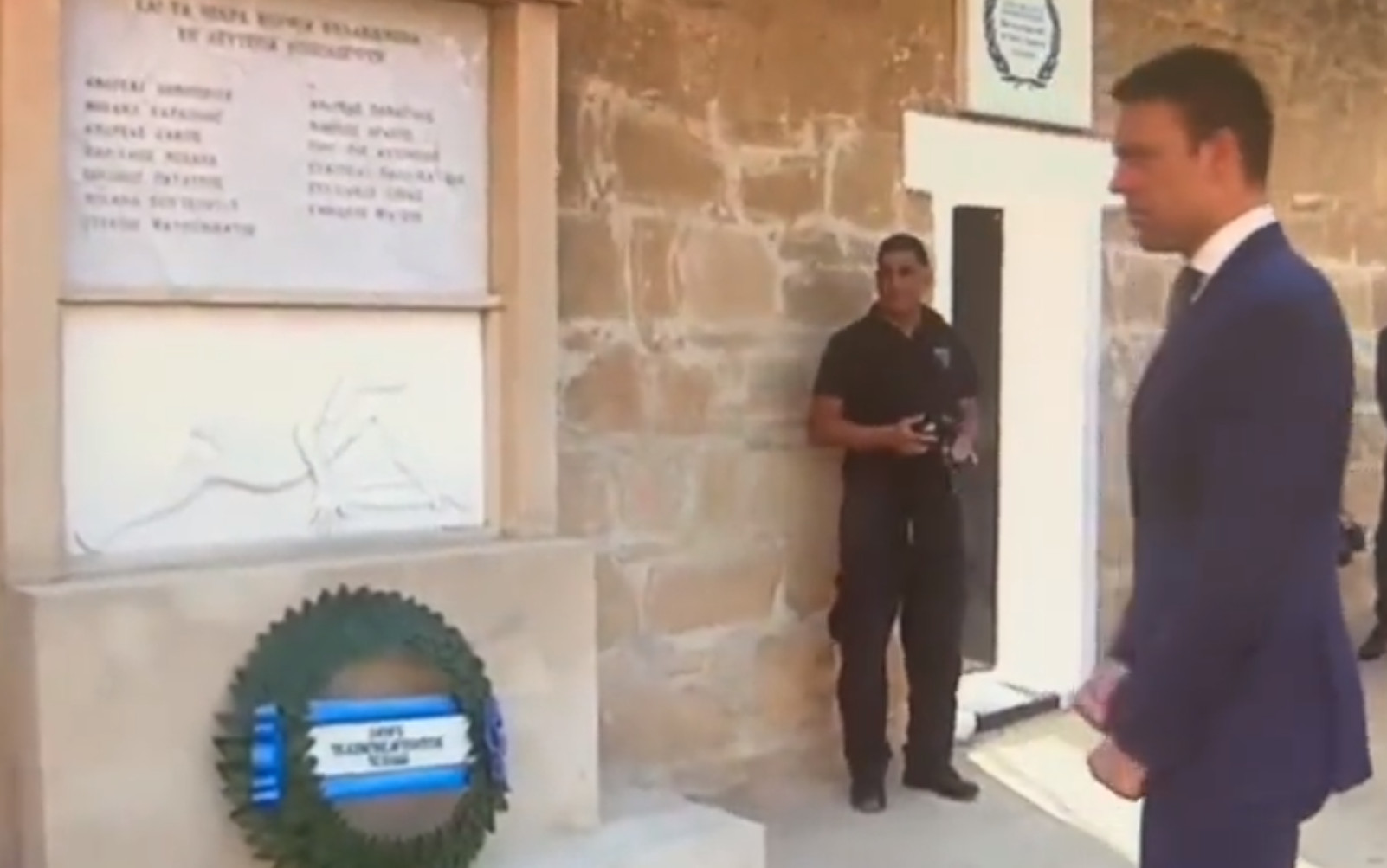 Ο πρόεδρος του ΣΥΡΙΖΑ κατέθεσε στεφάνι στον τύμβο της Μακεδονίτισσας και στη συνέχεια ενώ έχει ξεκινήσει η ανάκρουση του εθνικού ύμνου μοιάζει να μην ξέρει τι να κάνει και κάθεται με σταυρωμένα χέρια.