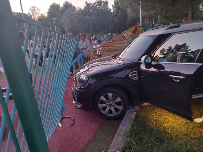 Ο οδηγός έχασε τον έλεγχο του του οχήματος με σέρβικες πινακίδες και ακολούθησε μια τρελή πορεία και τελικά έπεσε στα κάγκελα της παιδικής χαράς όπου σταμάτησε.