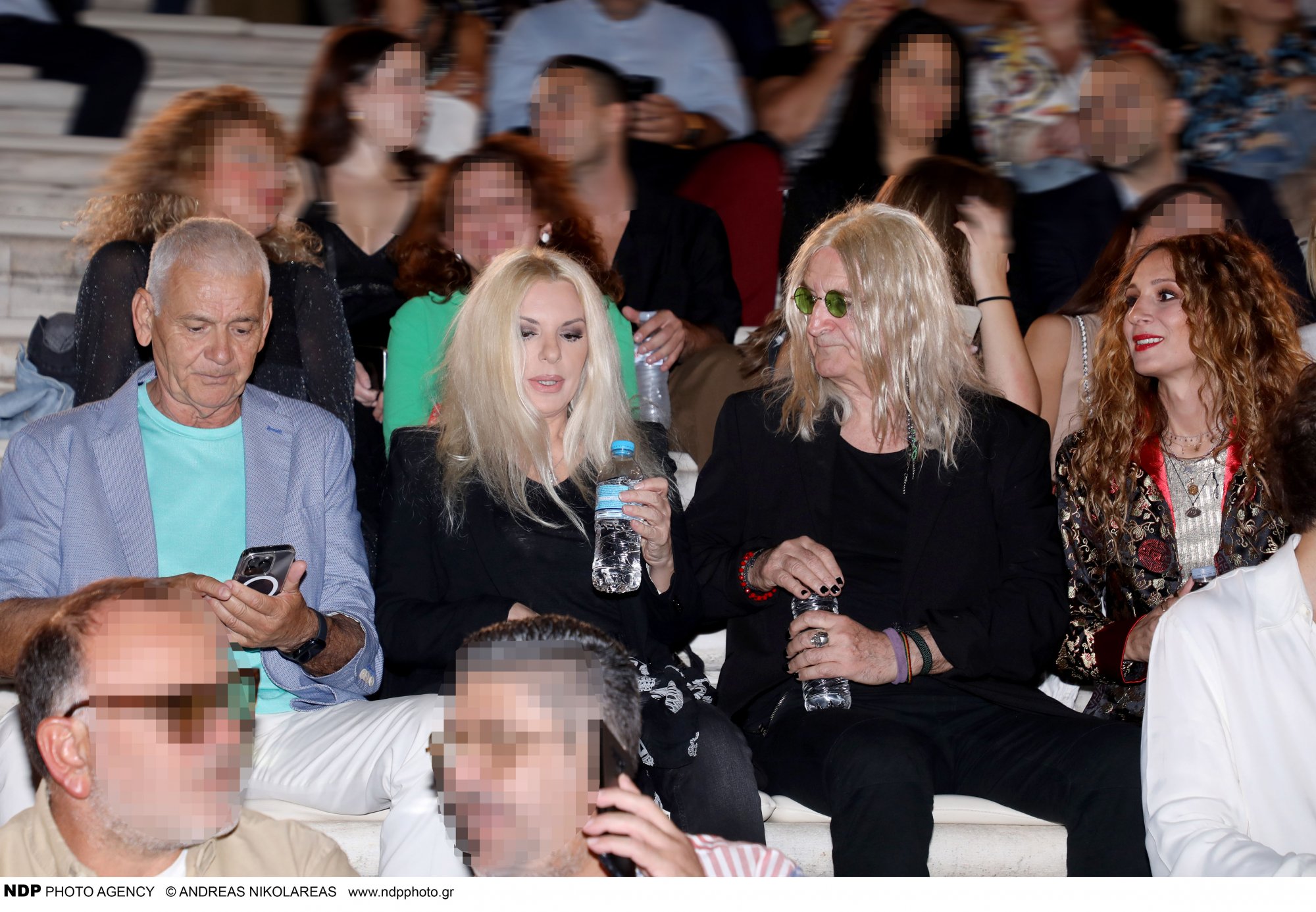 Ο συνθέτης πήγε και στην πρώτη και στη δεύτερη, στην οποία ο φακός τον απαθανάτισε να κάθεται ανάμεσα στην πρώην σύζυγό του, Αννίτα Πάνια και στην νυν, Έλενα Φερεντίνου.