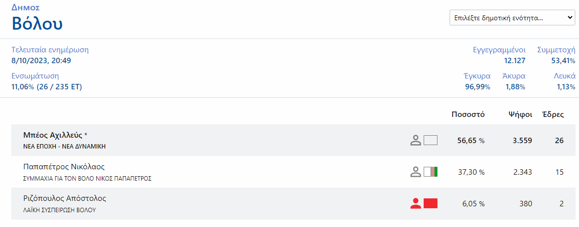 Τα μέχρι στιγμής αποτελέσματα στον Βόλο