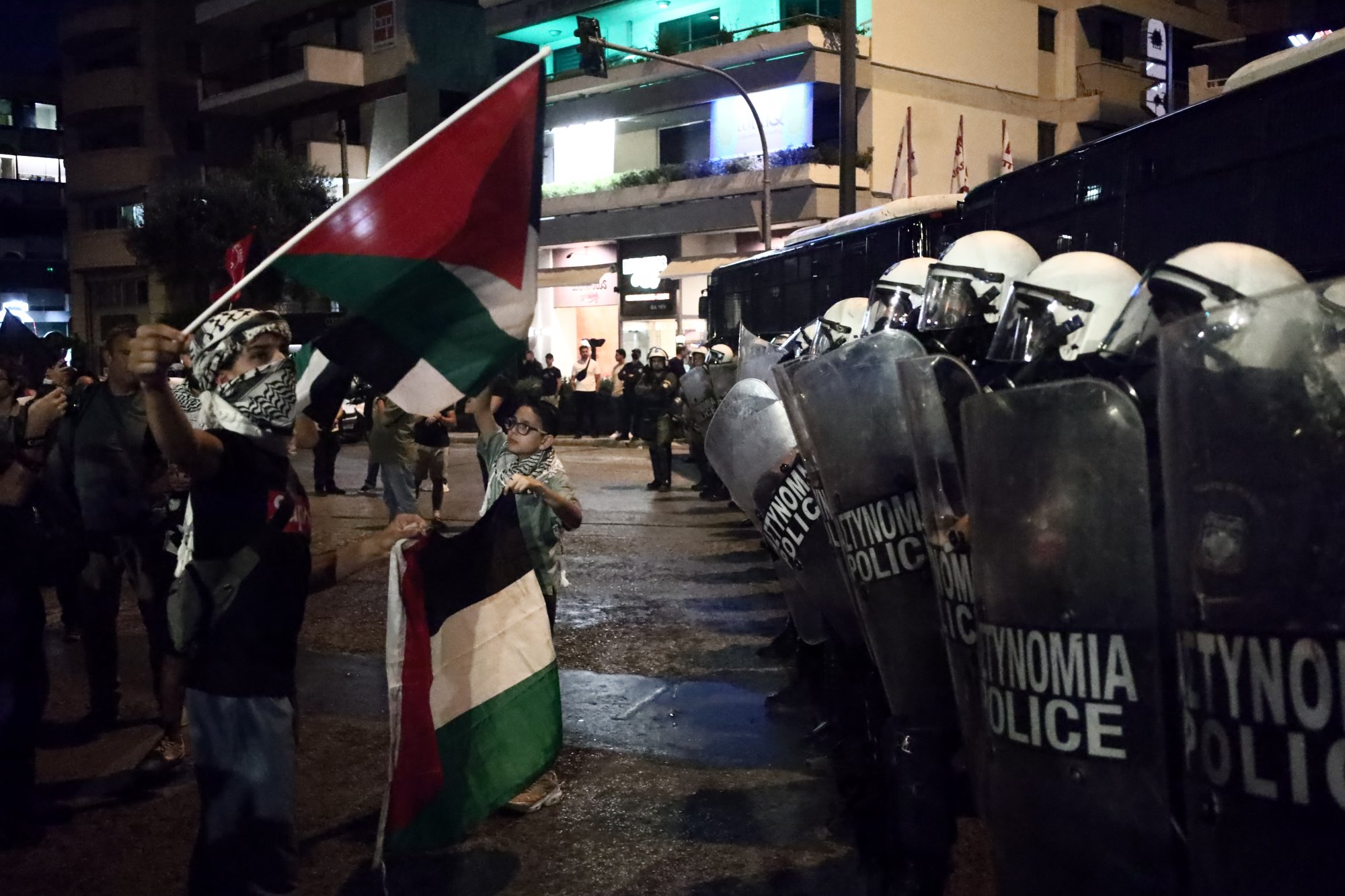 Συγκέντρωση «αλληλεγγύης στην Παλαιστινιακή Αντίσταση» πραγματοποιήθηκε το απόγευμα της Δευτέρας έξω από την πρεσβεία του Ισραήλ με την αστυνομία να λαμβάνει δρακόντεια μέτρα ασφαλείας