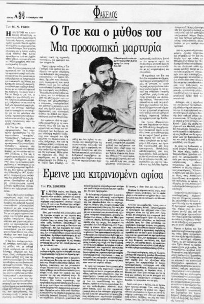 *Κείμενο-προσωπική μαρτυρία του Μιχάλη Ράπτη (Πάμπλο) για τον Τσε Γκεβάρα, που είχε δημοσιευτεί στην εφημερίδα «Το Βήμα» την Κυριακή 11 Οκτωβρίου 1992.