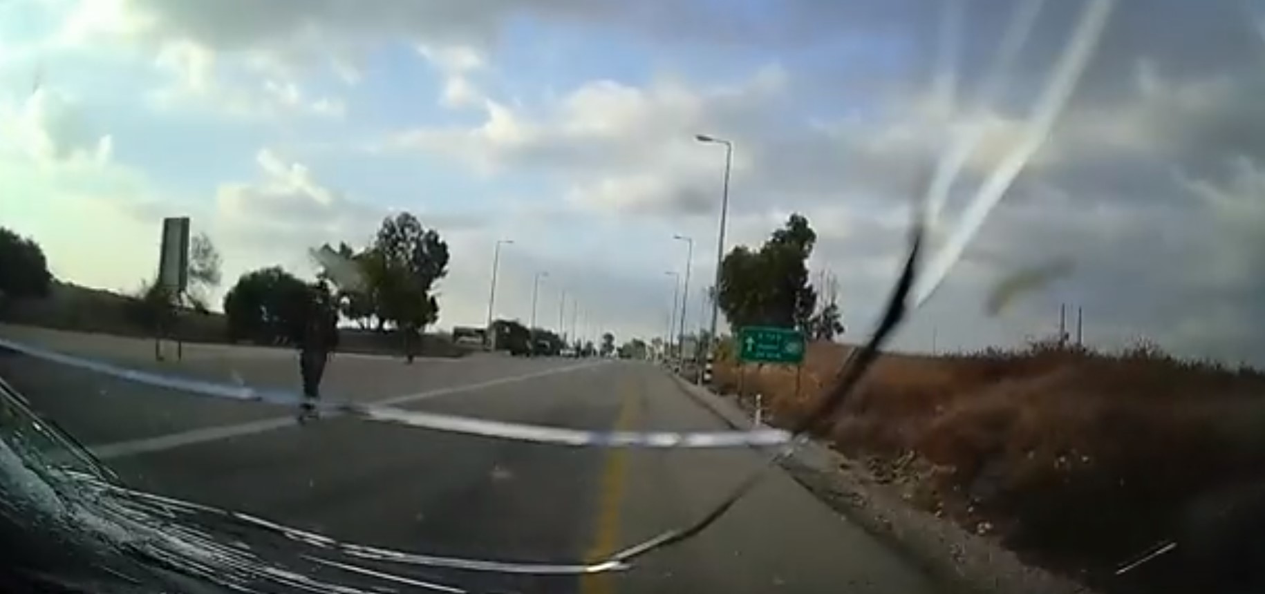 They driver slows down as he believes that he has encountered Israeli forces.