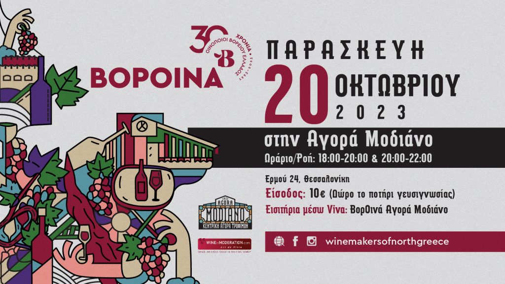 Την Παρασκευή 20 Οκτωβρίου, η Αγορά Μοδιάνο θα φιλοξενήσει στον πανοραμικό της εξώστη τα «ΒορΟινά» με τα τραπέζια των «Οινοποιών Βορείου Ελλάδος» εκεί όπου το κοινό θα έχει την ευκαιρία να γευθεί τον πλούτο του βορειοελλαδίτικου αμπελώνα.