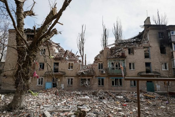 Κατεστραμμένο κτίριο κατοικιών από ρωσικούς βομβαρδισμούς στην Αβντιίβκα (φωτογραφία Reuters/Alex Babenko)