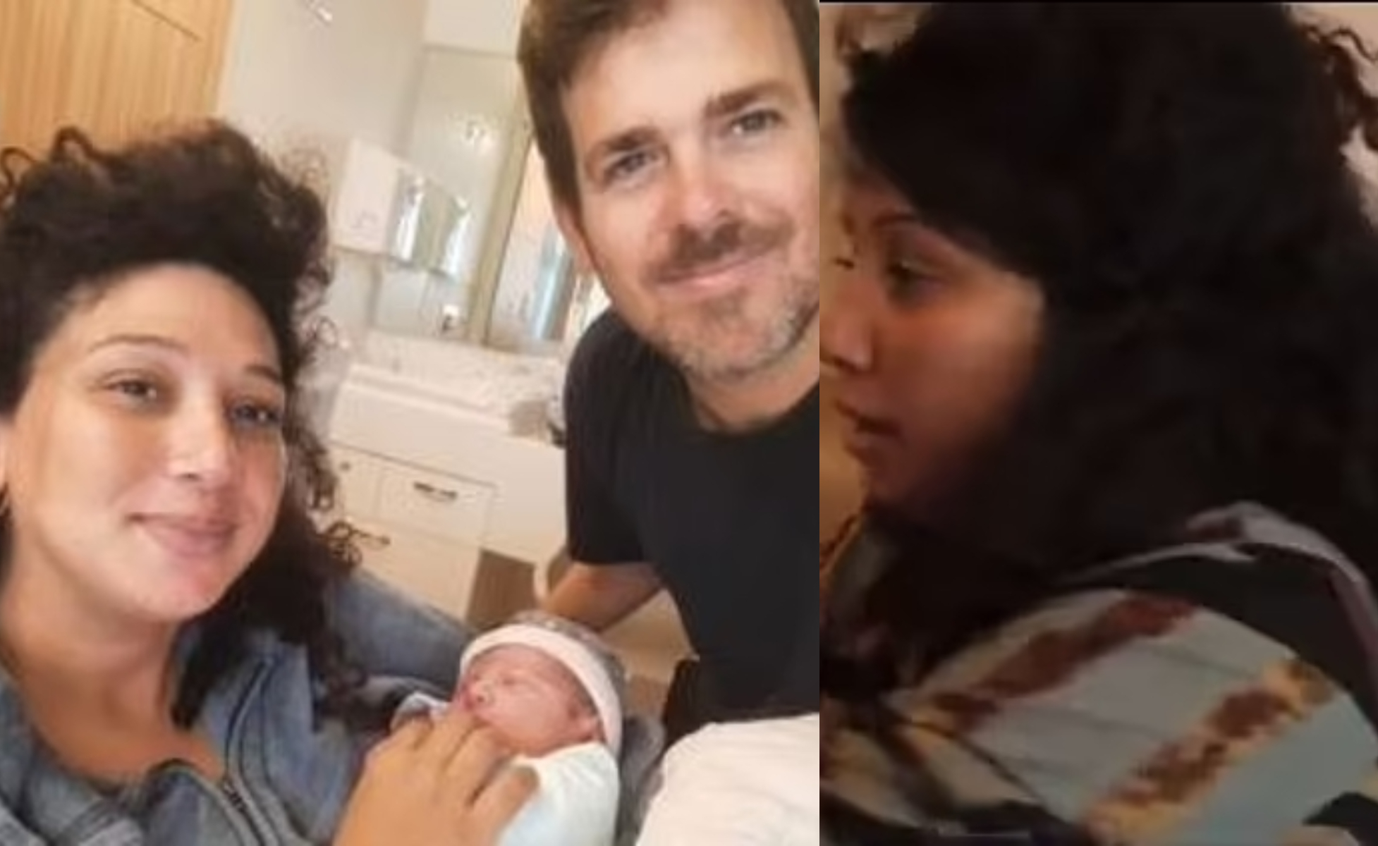 Κατά τη διάρκεια της συνέντευξης, ωστόσο, η γυναίκα φαίνεται να μιλάει στη μητέρα της, η οποία έχει πέσει στο πάτωμα στο διάδρομο κρατώντας με τα χέρια της το κεφάλι της κλαίγοντας.