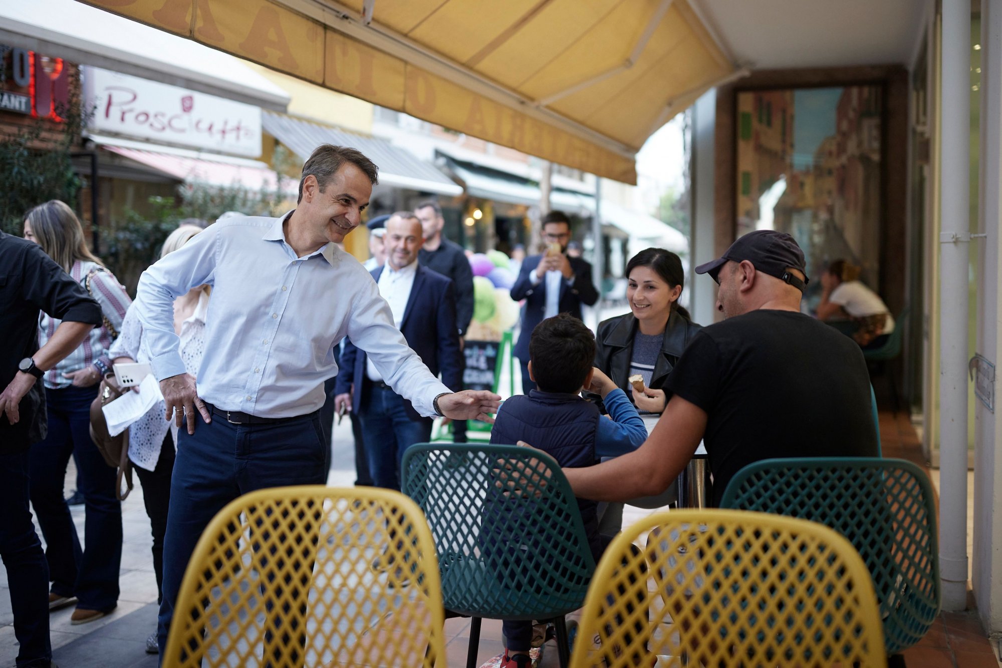 Ο Κυριάκος Μητσοτάκης και ο Χρήστος Μέτιος περπάτησαν σε κεντρικούς δρόμους της πόλης και είχαν την ευκαιρία να συνομιλήσουν με κατοίκους και καταστηματάρχες.