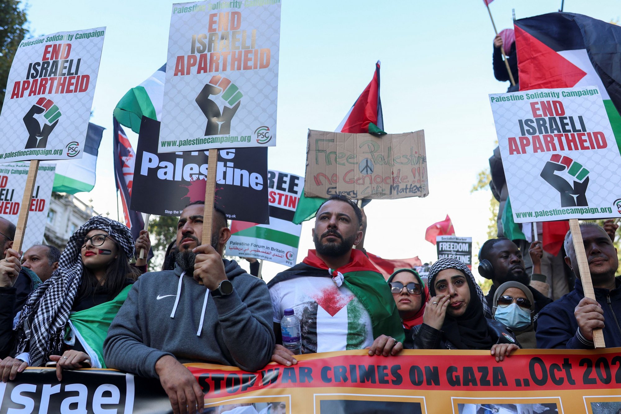 Διαδήλωση υπέρ της Παλαιστίνης με τη συμμετοχή χιλιάδων ατόμων σημειώθηκε σήμερα Σάββατο στο κέντρο του Λονδίνου, στη Μεγάλη Βρετανία, καθώς αναμένεται η ισραηλινή χερσαία επίθεση στη Γάζα.