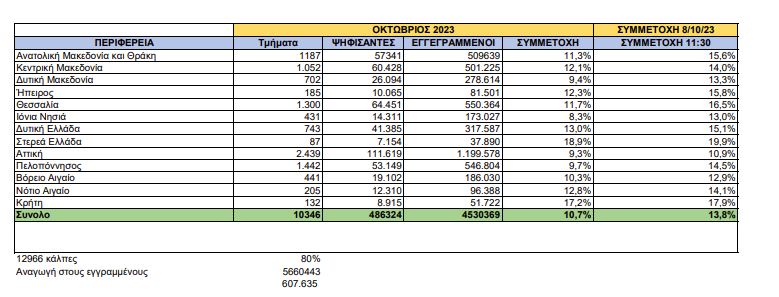 Τα ποσοστά συμμετοχής μέχρι τις 17:30 ανά περιφέρεια