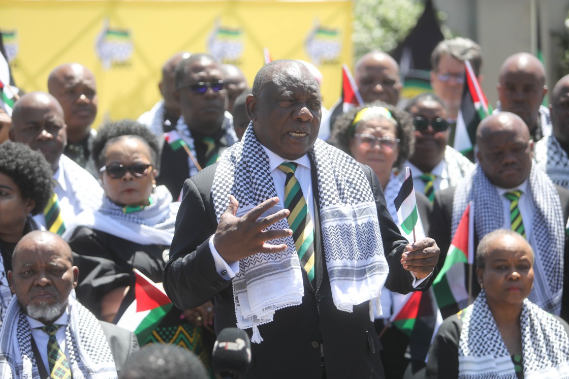 Ο πρόεδρος της Νοτίας Αφρικής υπογράμμισε την ιστορική σχέση με την Παλαιστίνη σε ομιλία του φορώντας κεφίγια, περιτριγυρισμένος από άτομα και μέλη του υπουργικού συμβουλίου με σημαίες της Παλαιστίνη και δικές τους κεφίγια. Αποκάλεσε το Ισραήλ ένα καταπιεστικό καθεστώς που παραβιάζει τα ανθρώπινα δικαιώματα και επιβάλει αντίστοιχες πολιτικές με το Άπαρτχάιντ εναντίον των Παλαιστινίων. H φιλία των δύο χωρών απογειώθηκε από την σχέση και αλληλοϋποστήριξη μεταξύ Νέλσον Μαντέλα και Γιάσερ Αραφάτ.