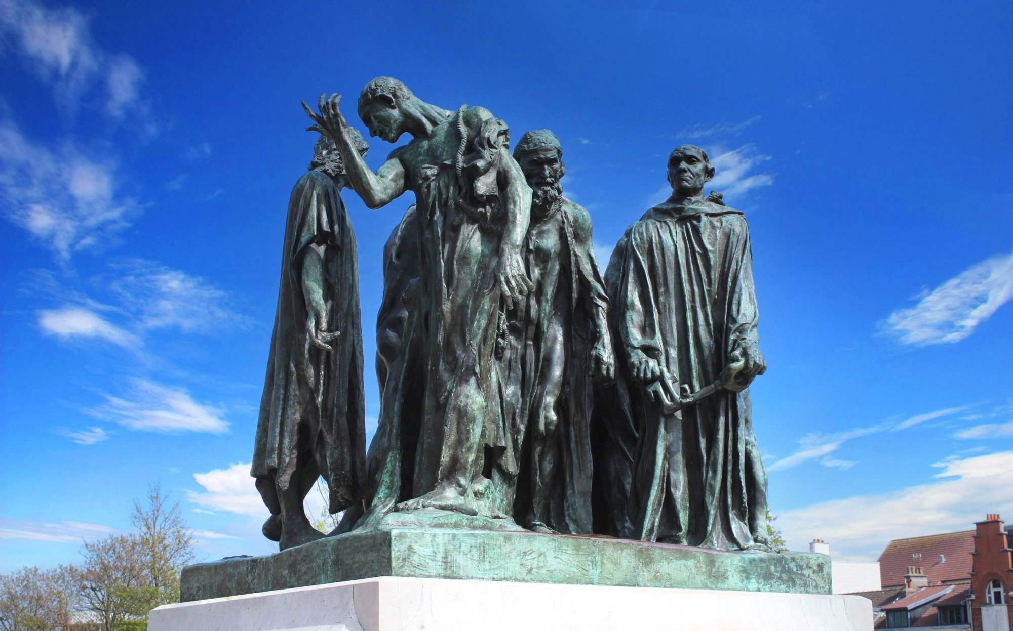 Το γλυπτό απεικονίζει τα δεινά των κατοίκων του γαλλικού λιμανιού κατά τη διάρκεια 11μηνης πολιορκίας από τους Άγγλους κατά τον Εκατονταετή Πόλεμο.