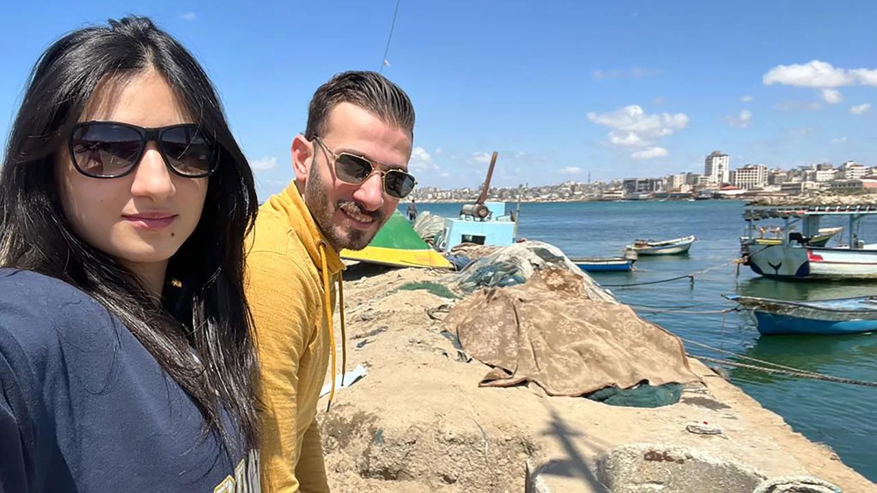 Η 27χρονη Nardeen Fares βγάζει selfie με τον σύζυγό της στο λιμάνι της Γάζας τον Μάιο