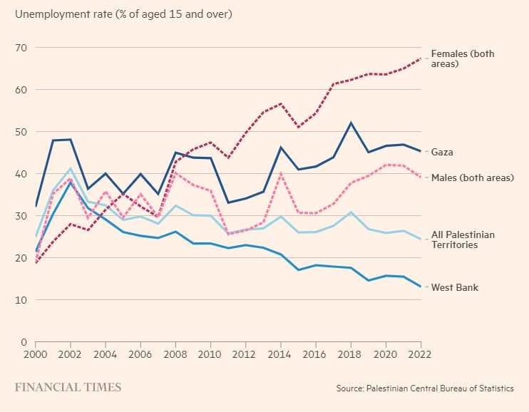 Η συλλογή δεδομένων για την αγορά εργασίας και το βιοτικό επίπεδο στις δύο παλαιστινιακές περιοχές αποτελεί σοβαρή πρόκληση, αναφέρουν οι FT.