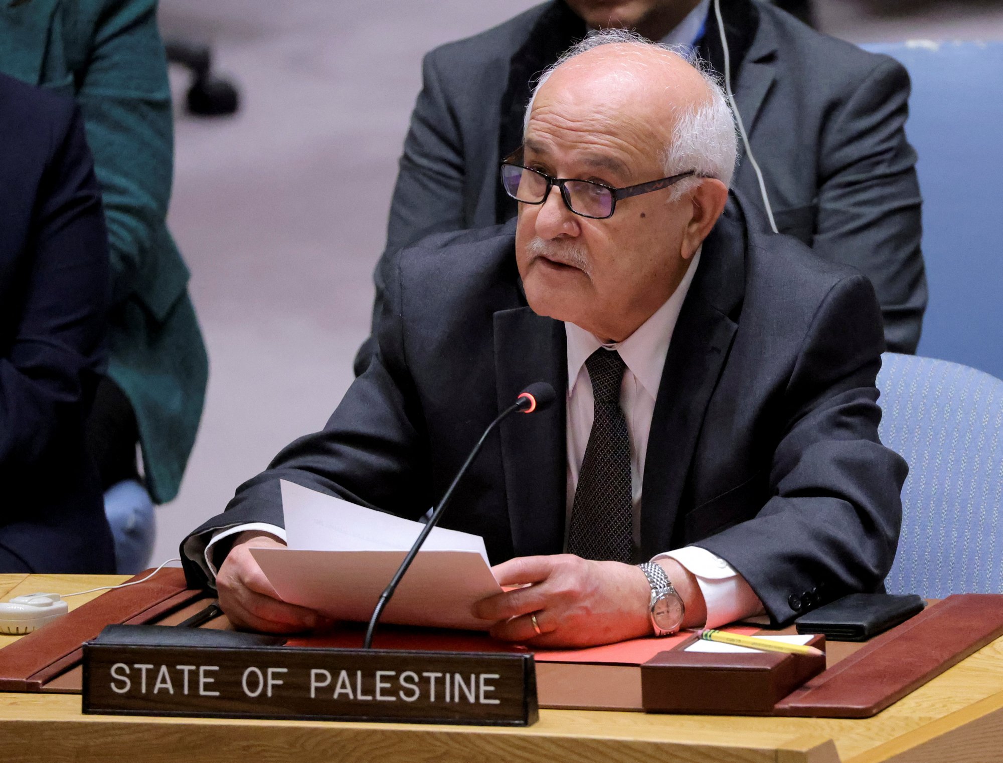 Προσκληθείς να εκφραστεί, ο πρεσβευτής της Παλαιστίνης στα Ηνωμένα Έθνη Ριάντ Μανσούρ «εκλιπάρησε» τα μέλη του ΣΑ να «μη στείλουν το μήνυμα ότι οι παλαιστινιακές ζωές δεν μετράνε».