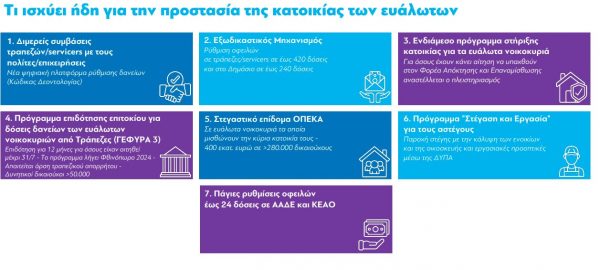 1. Θεσπίζονται υποχρεώσεις διαφάνειας, ενημέρωσης και σεβασμού των δικαιωμάτων των οφειλετών για τους servicers. 2. Διευρύνεται η προστασία για τους πραγματικά ευάλωτους. 3. Εκσυγχρονίζονται και βελτιώνονται οι ρυθμίσεις για τον εξωδικαστικό μηχανισμό. 4. Εισάγονται ρυθμίσεις που ενισχύουν τον ανταγωνισμό, όπως η χορήγηση δανείων από μη τραπεζικούς φορείς. 5. Επεκτείνονται οι συναλλαγές μέσω του συστήματος άμεσων πληρωμών (IRIS).