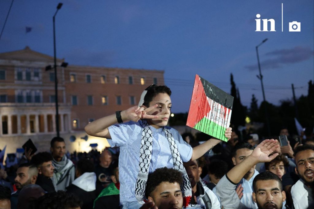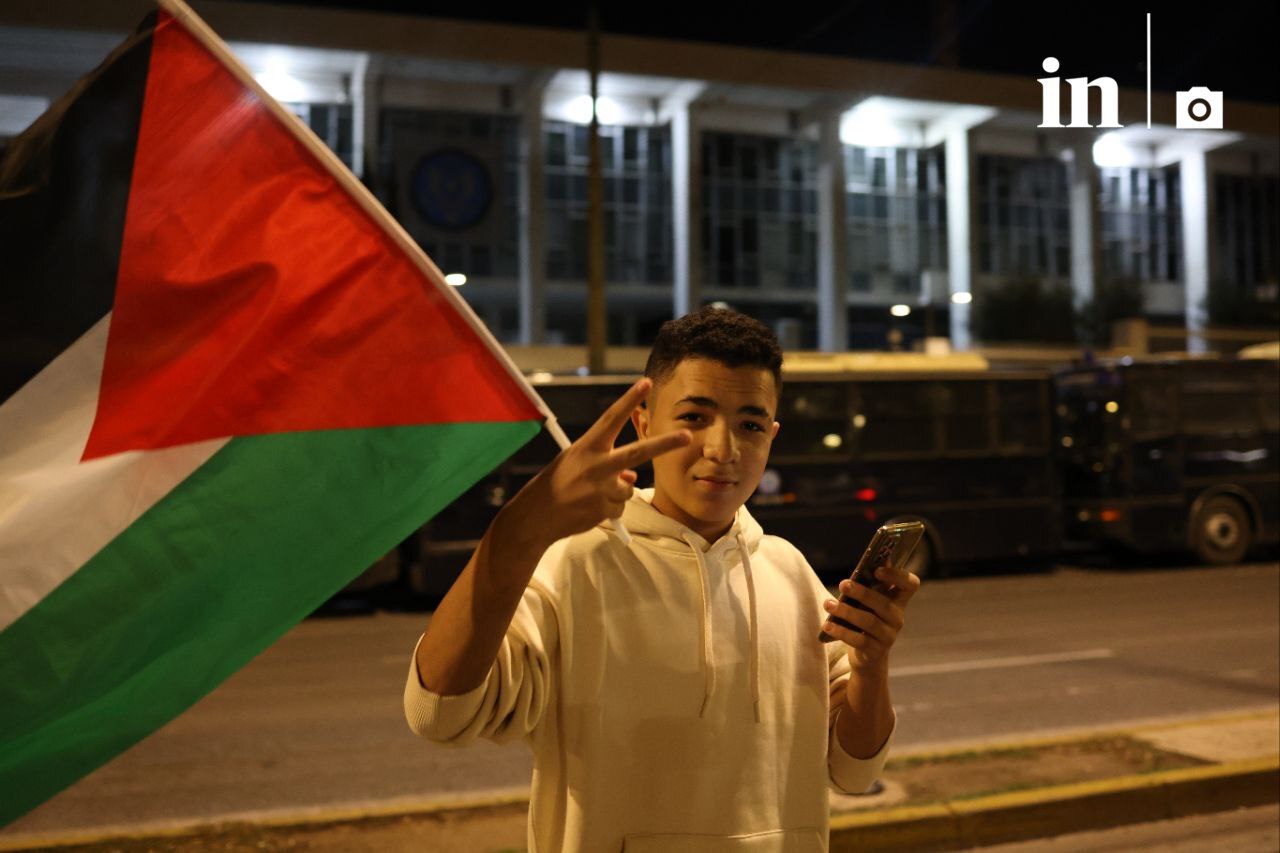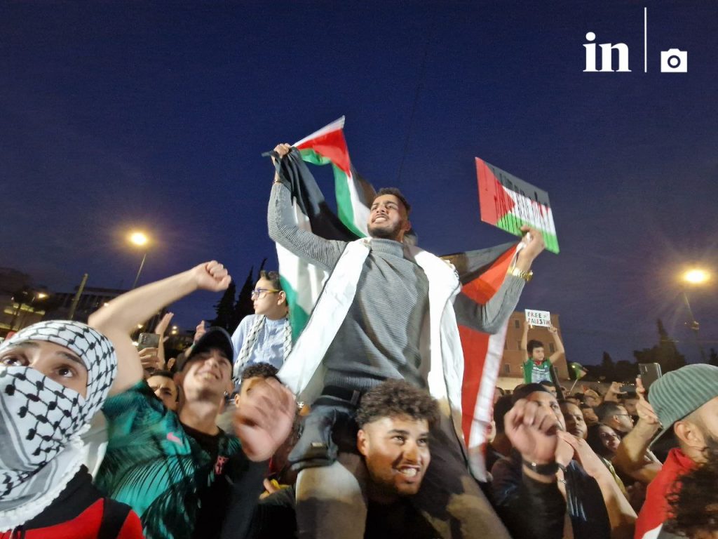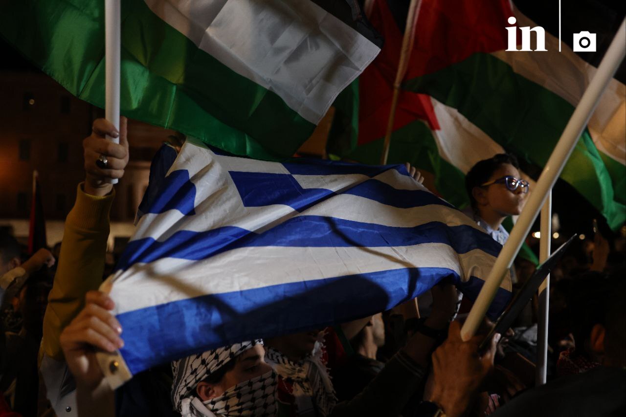 Παλαιστινιακές σημαίες μαζί με την ελληνική