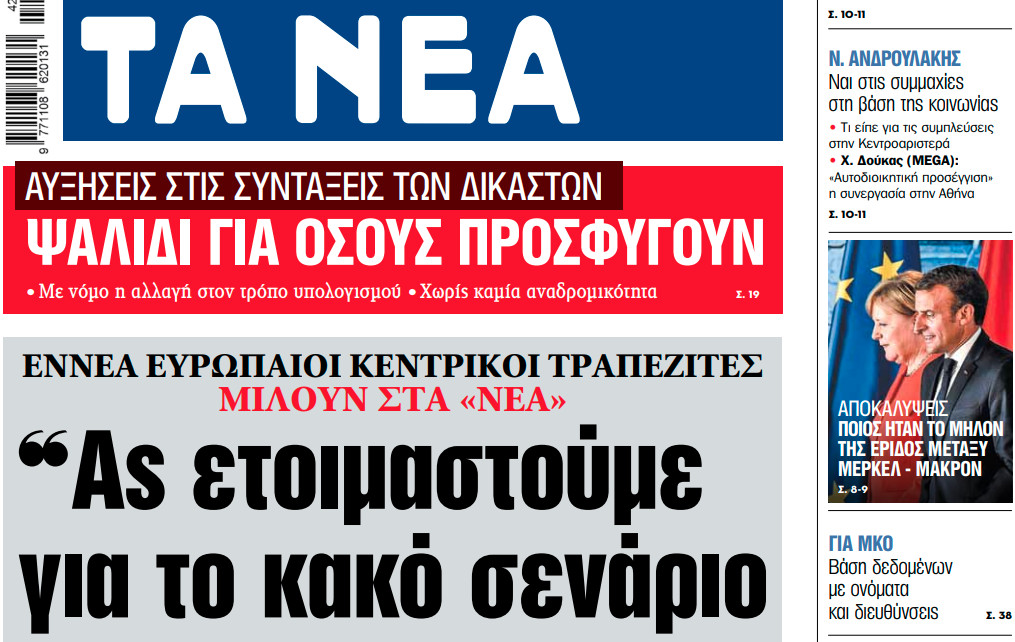 Στα «ΝΕΑ» της Τετάρτης: «Ας ετοιμαστούμε για το κακό σενάριο»