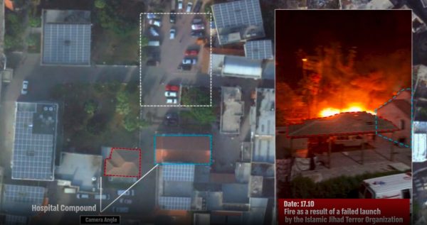 «Από την ανάλυση των επιχειρησιακών συστημάτων των IDF (Israel defense forces) πραγματοποιήθηκε εχθρική βολή ρουκετών προς το Ισραήλ, η οποία πέρασε από την περιοχή του νοσοκομείου όταν χτυπήθηκε.