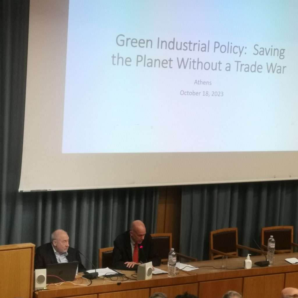 Το θέμα της διάλεξης του κ. Stiglitz ήταν “Green Industrial Policy: Saving the Planet Without a Trade War“.