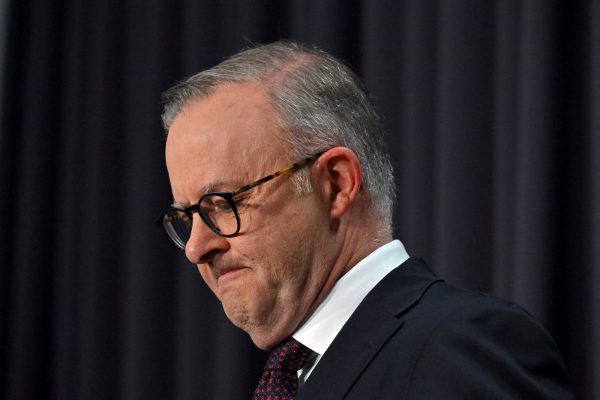 Ο πρωθυπουργός της Αυστραλίας Άντονι Αλμπανέζε κάνει δηλώσεις σχετικά με το αποτέλεσμα του φωνητικού δημοψηφίσματος στο Κοινοβούλιο στην Καμπέρα, Αυστραλία, 14 Οκτωβρίου 2023. (AAP/Μικ).